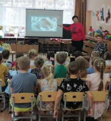 Библиотекарь рассказала также ребятам, что зима — очень тяжелое время года для птиц, нашим пернатым друзьям бывает холодно и голодно. Чтобы согреться, птицам необходимо много есть, и еды им нужно зимой намного больше, чем летом. Поговорили о кормушках для птиц и о подкормке пернатых друзей, в том числе и «синичкины лакомства»: несоленое сало, нежареные семечки тыквы, подсолнечника или арахиса.