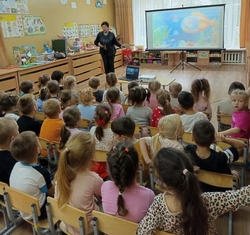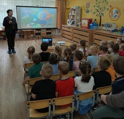 Библиотекарь детской библиотеки им. А.П. Гайдара рассказала ребятам из детского сада № 39 сколько океанов и морей насчитывается на Земле, объяснила какую важную роль оказывают моря в жизни всей планеты и их влияние на климат, экологию и жизнедеятельность человека.
