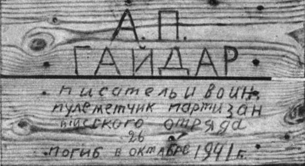 Долгое время обстоятельства гибели знаменитого детского писателя оставались неясными. В 1965 г., после того, как были восстановлены все обстоятельства гибели, Гайдар был посмертно награжден орденом Отечественной войны 1 степени.