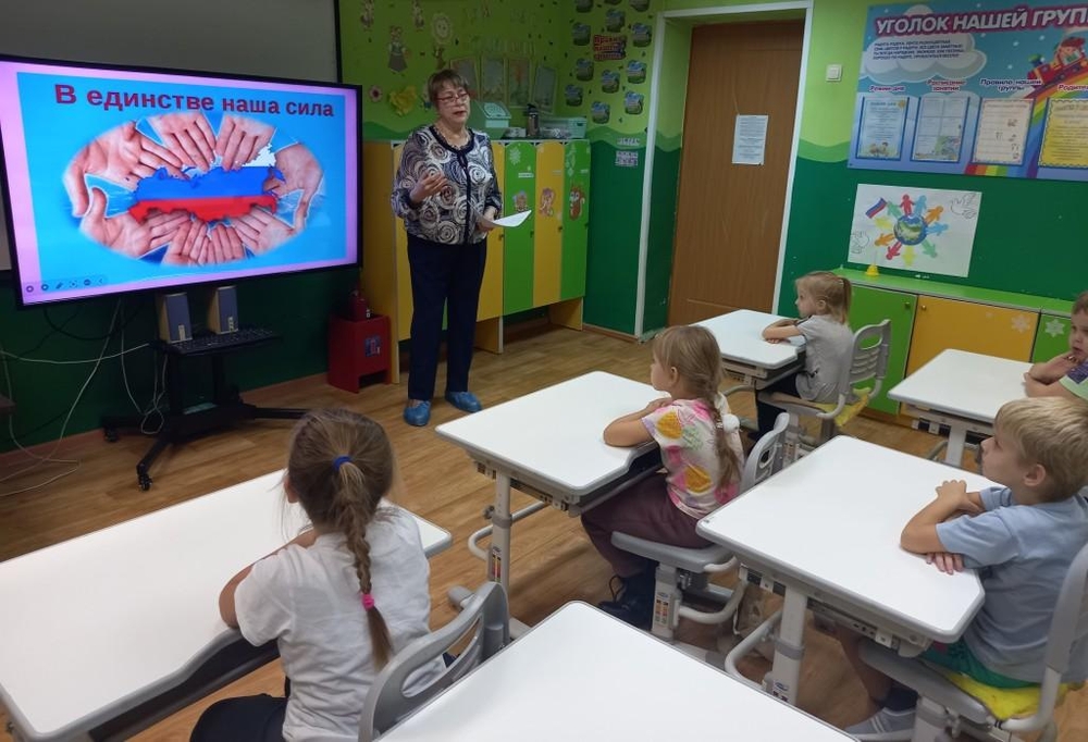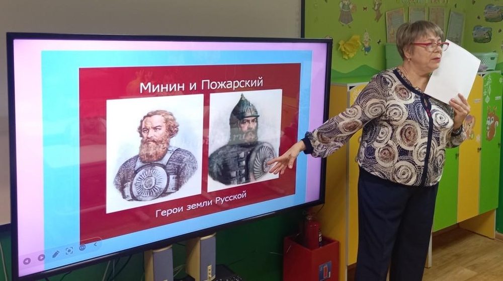 Детям рассказали об истории установления праздника, представили подробную информацию о событиях 1612 года, когда в едином духовном и ратном порыве народным ополчением под руководством К. Минина и Д. Пожарского была освобождена Москва. Дети также узнали историю православного праздника иконы Казанской Божией Матери, который празднуется в День народного единства.