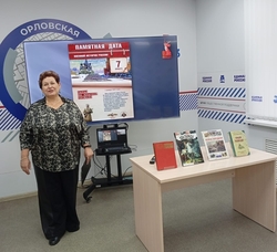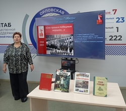Библиотекарь Ирина Анатольевна Мищенко рассказала ребятам о своем родственнике Леониде Митрофановиче Мищенко, который участвовал в параде Победы 24 мая 1945 года. А затем в 1995 г. и в 2000г. он был приглашен на парады 9 Мая в Москву, и в качестве почетного гостя сидел на трибуне.