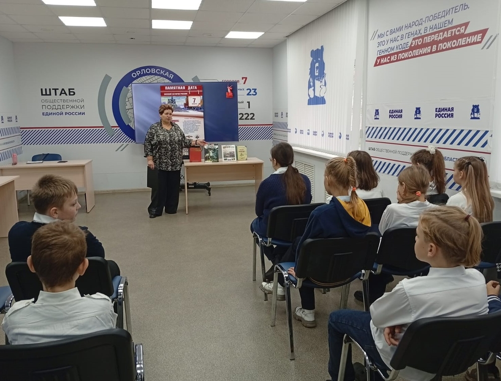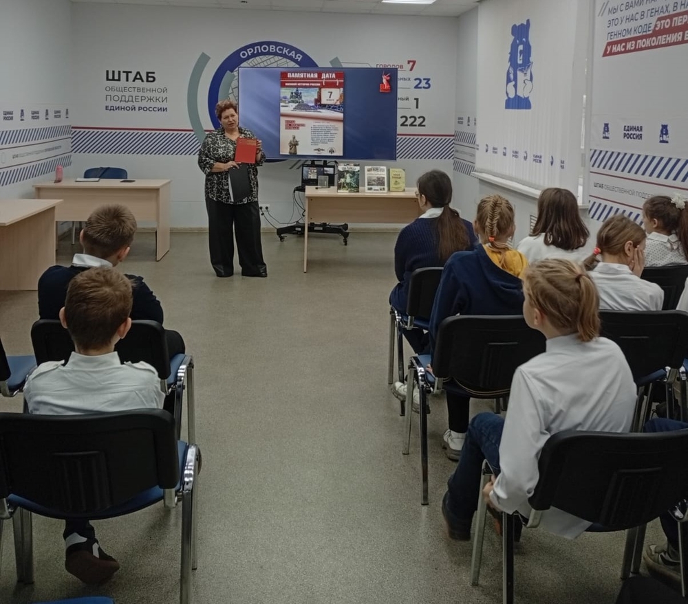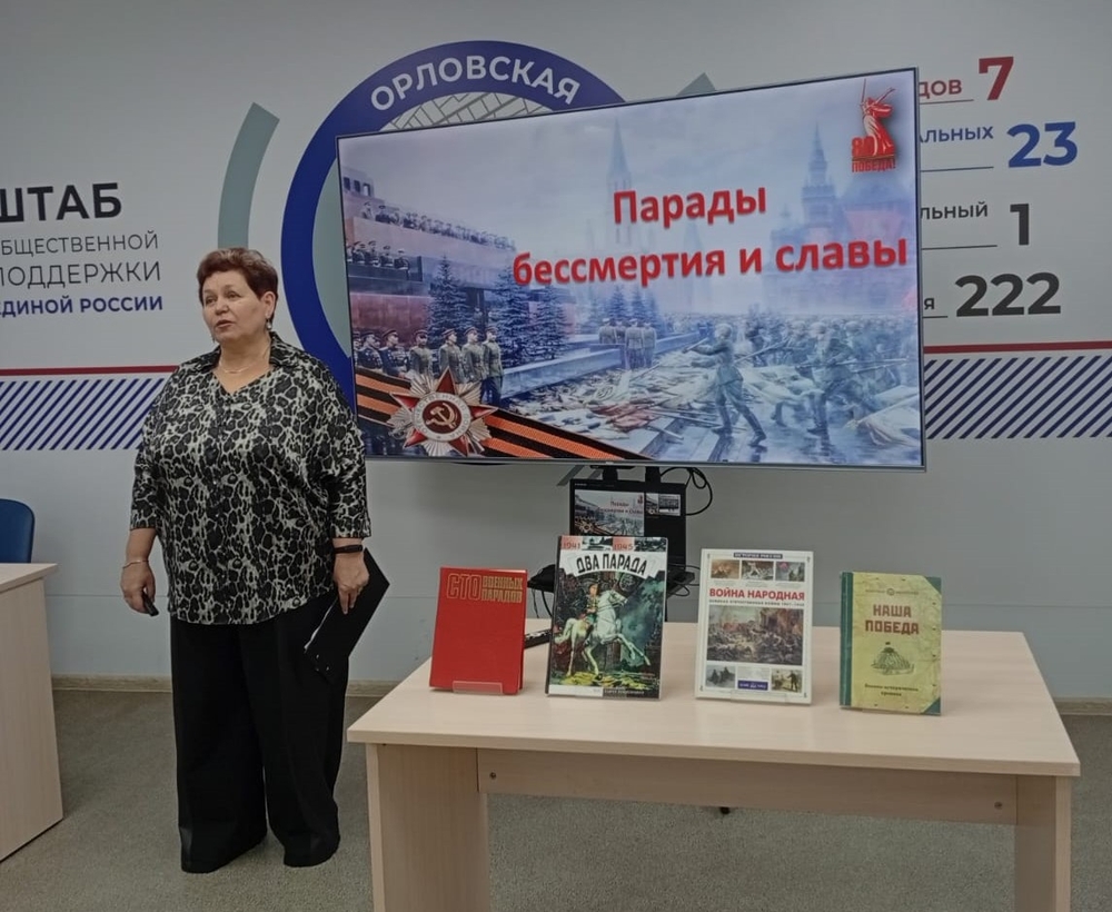 В Штабе общественной поддержки библиотекари детской библиотеки им. А.П. Гайдара провели для пятиклассников школы № 30 исторический хронограф «Парады славы, парады бессмертия». Библиотекарь Светлана Владимировна Савицкая рассказала интересные исторические факты о проведении военных парадов на Красной площади в столице нашей Родины- Москве.