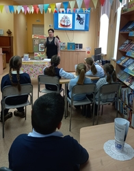 В Гайдаровку в праздничное библиокафе были приглашены четвероклассники лицея № 22 им. А.П. Иванова. В меню было: исторический коктейль, праздничное ассорти, библио-дегустация и кино-фреш. Библиотекари познакомили юных читателей с удивительной биографией писателя.