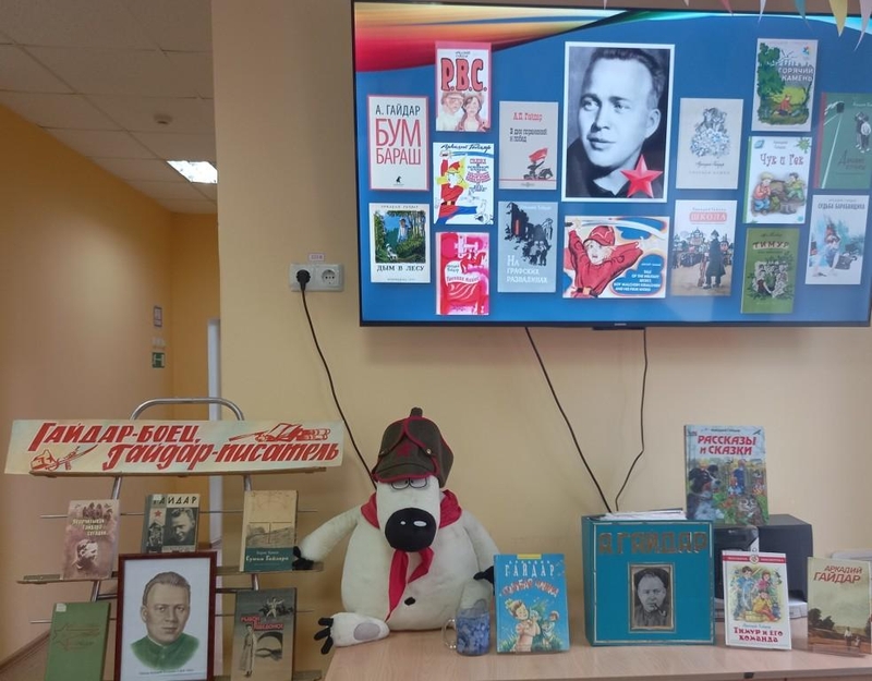 В это день на абонементе юные читатели приняли участие в литературном квизе «Перечитывая Гайдара сегодня», в игре-обсуждении «Салют, Мальчишу!» и в экологической викторине по произведениям А. Гайдара. А самые юные читатели вместе с родителями посмотрели любимый мультфильм «Сказка о Мальчише-Кибальчише и его твёрдом слове», который отражает патриотизм и нравственные идеалы писателя.