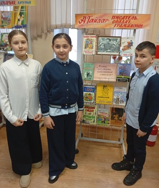 Школьники узнали интересные факты из его биографии, в том числе о том, как и почему писатель выбрал свой литературный псевдоним. Ребята вспомнили знаменитые повести и рассказы Гайдара, ставшие классикой детской литературы. Школьники узнали, что в этом году произведениям А.П. Гайдара «Тимур и его команда» и «Клятва Тимура» исполняется 85 лет. Отметили, что в своих книгах детский писатель рассказывает о вечных жизненных ценностях, доброте, долге, честности, благородстве, учит любить и защищать Родину.