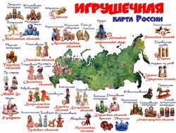 Путешествуя по карте, ребята убедились, что одними из самых популярных являются игрушки из глины: Дымковская, Каргапольская, Ковровская, Абашевская, Каргопольская, Дымковская, Жбанниковская, Акбулакская, Вырковская, Кожлянская, Романовская, Филимоновская, Старооскольская, Хлудневская, Богородская, Поморская, Саратовская и др. Ребята с восхищением увидели, что Орловская область на карте представлена Плешковской и Чернышенской глиняными игрушками.