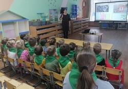 Библиотекарь детской библиотеки им. А.П. Гайдара рассказала отряду «Эколят» из подготовительной к школе группы «Всезнайка» детского сада № 39 о том, как сделать мир чище. Она напомнила детям, откуда берется мусор, какие бывают виды мусора, для чего сортируют мусор, как долго разлагаются разные виды отходов, и как можно дать вторую жизнь мусору.