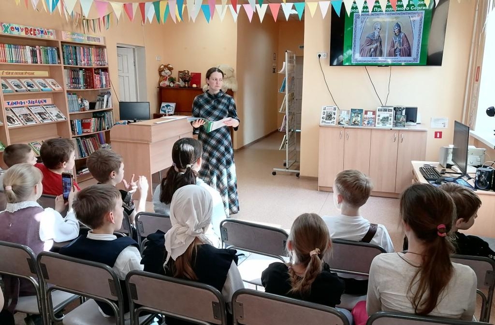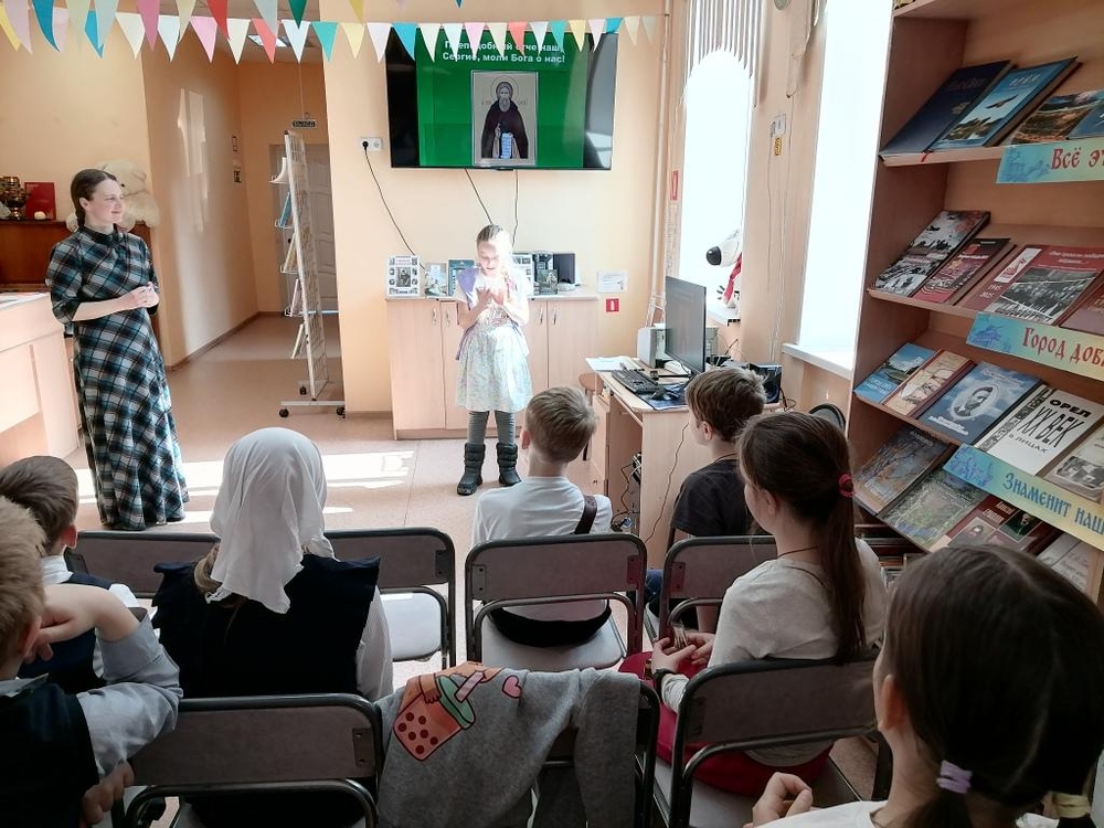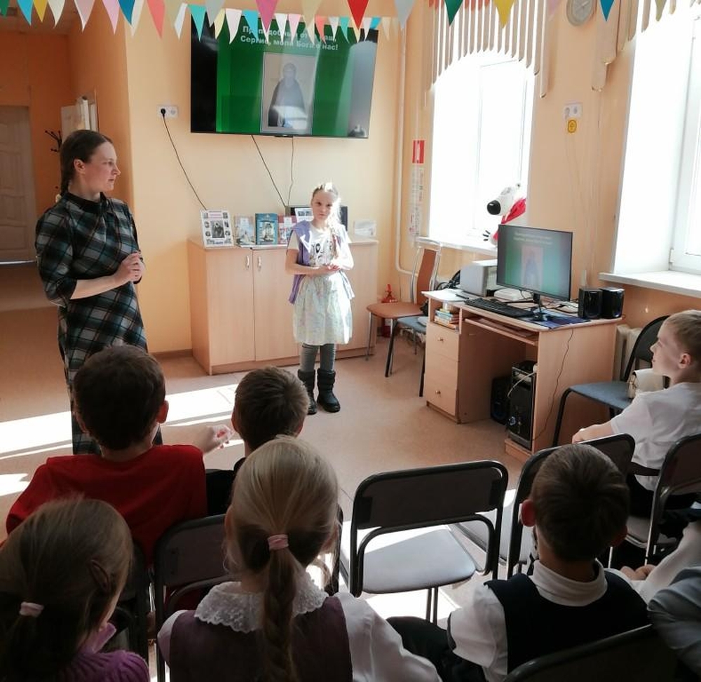 Вся жизнь его определялась только двумя, неразрывно связанными, евангельскими заповедями — любовью к Богу и любовью к человеку. О его детстве, жизни в труде, богомыслии, покаянии и отшельничестве, как старец пришел на служение людям, рассказала юным читателям преподаватель орловской православной гимназии Елена Владимировна Сиротинкина. Дети с большим интересом слушали, а затем отвечали на вопросы викторины. Преподаватель призвала школьников учиться у великого святого Вере и Любви, а также подражать ему в мудрости и доброте.