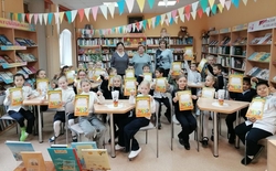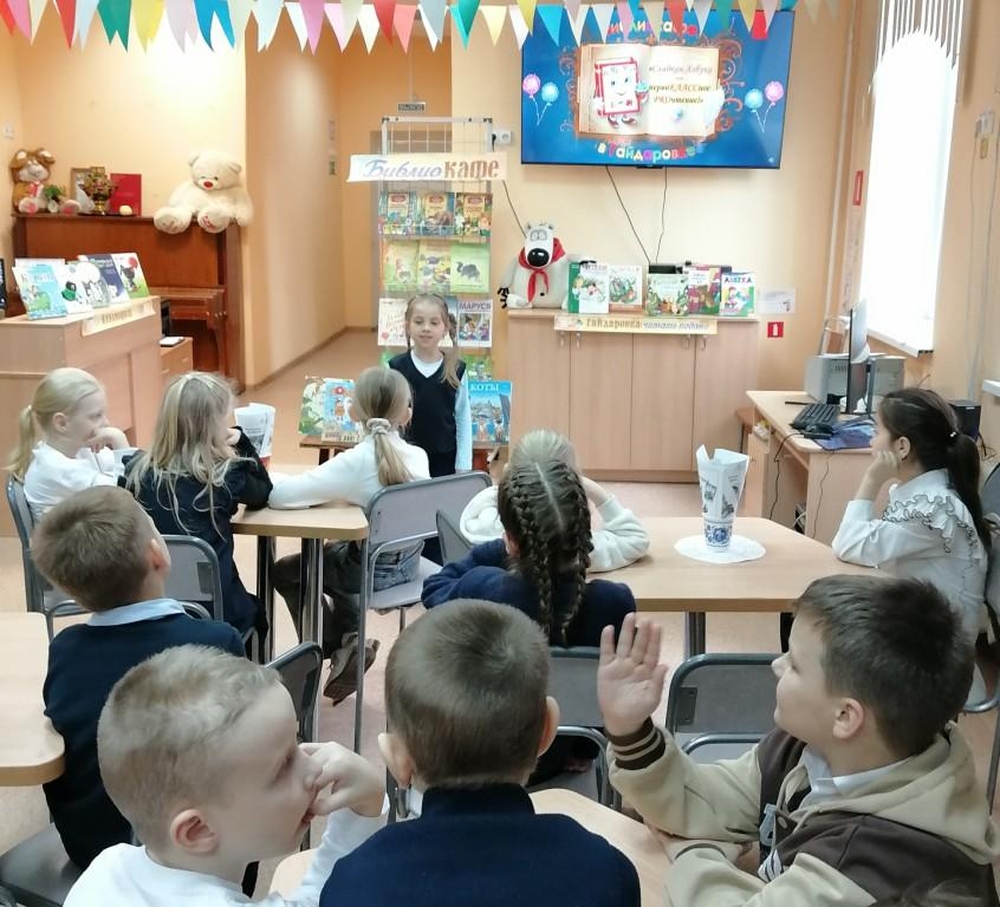 Стало доброй традицией проводить для первоклассников праздник «Прощание с Азбукой» в нашей Гайдаровке. Поэтому, сразу после экскурсии первоклассники посетили наше замечательное библиокафе «ПервоКЛАССное проЧТЕНИЕ»! Там их ждала специально подготовленная веселая познавательная программа, насыщенная игровыми моментами. Дети успешно опробовали всё меню библиокафе: составляли слова, отгадывали загадки, играли и читали стихи. Каждый ребёнок смог проявить свои знания и умения, а также показать, чему он научился за время изучения Азбуки. Библиотекарь провела также для первоклассников небольшой обзор новых детских книг из фонда Гайдаровки.