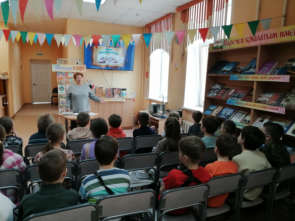 Библиотекарь познакомила школьников с историей создания «Книжкиной Недели, рассказала об известных российских детских писателях и поэтах и предложила взять эти книги для прочтения. Ребят удивил и восхитил самбук «Первоапрельский»: рассказ про праздник «День смеха», когда он появился и как его отмечают в разных странах мира. А затем, все вместе в библиобаре угадывали название напитка, и в каком произведении он встречается. Было очень интересно и весело!