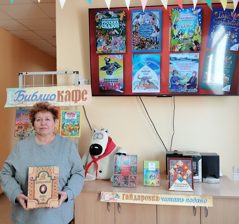 А вот комплимент от нашего шеф-повара Топы был представлен в виде сказок народов России. Тем более что этот год объявлен Годом единства народов России. У каждого народа свои герои и сюжеты, но все сказки учат добру, смелости и справедливости. По окончании встречи юные читатели с большим удовольствием посмотрели мультфильм из цикла «Гора самоцветов»!