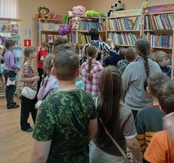 Обмениваясь своими впечатлениями, школьники поспешили на абонемент, где с удовольствием стали рассматривать новые детские книги, представленные на книжных выставках к весенним каникулам. Наши юные читатели сразу же взяли домой несколько книг. А первоклассник Умар Низаметдинов, который пришел к нам на мероприятие вместе с мамой, стал новым читателем Гайдаровки.